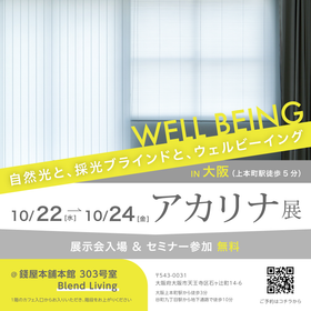 関西初!ポップアップショールーム2025@大阪採光ブラインド アカリナC※ リフレクトは、既存の窓に設置するだけで遮熱性能を高めて、窓際の暑さを和らげます。 そんなアカリナCの性能をご体感いただける関西初となるイベントを、大阪・上本町駅近くの銭屋本舗本館の3階303号室にある「Blend Living」にて開催いたします。ご来場の際に下記URLから事前にご予約いただくと、プレゼントをご用意しております。 ぜひ、この機会に「閉めても明るい、熱くならない、折れないブラインド」の性能を、見て触ってお確かめください。 皆様のお越しを心よりお待ちしております。 ■ ご来場特典 1 予約ご来場者様にスターバックスコーヒーのビバレッジカードをプレゼント ■ ご来場特典 2 ご来場者様限定、特別価格でご提供 ※初めてご購入の場合、2025年8月31日までのお見積もり分に適用 ※採光ブラインド アカリナは、製品の仕様・保証内容やサービスの違いで法人用と個人用がございます。法人用のアカリナは、アカリナ コントラクト(以下「アカリナC」という)です。