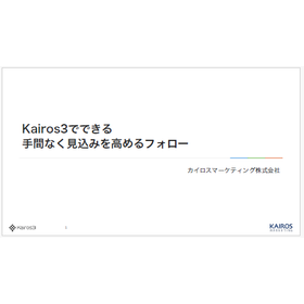 2012年創業以来、自社開発MA/SFAツール 「Kairos3」 を通じて、 規模業種問わず2000社以上の営業及びマーケティング組織の改革を支援して参りました。 「マーケティングをもっと身近に」 をミッションとして掲げ、 実践的なマーケティングをあらゆる企業の販促活動全体にインストールし、 小さなチームでも大きな市場を動かせる社会を目指し活動しています。 現在の販促設計や営業体制に課題がございましたら是非ご相談ください。 最適なソリューションをご提案差し上げます。