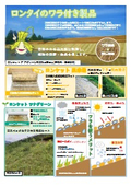 ワラ付張芝『ロンケット ワラ』は、被覆材に天然のワラを採用し、 ワラが持つ断熱性・保水性、侵食防止効果などによって 植物の生育に適した環境を生み出し、盛土法面を効果的に保護します。 リーズナブルな価格と高機能を両立しており、 道路・造成工事、圃場整備工事など、多数の導入実績があります。 また、土壌の微生物により分解されるため環境保全にも貢献します。 【ワラを使った関連製品もございます】 ■「ロンケット キーパー」…ワラと不織布の複合効果で、高い侵食防止効果を発揮 ■「ロンケット モスアナ」…ワラに肥料と土壌改良効果をプラス ■「モスケット」…ワラコモにネットを装着。強風によるワラの飛散を防止 ■「ロンケット オーガ」…ネットや紙まで、すべて100%自然分解 ■「ロンケット デ アグリーン」…編み糸に生分解性プラスチックを使用 ★製品紹介・ワラの特性・施工事例などを掲載した資料を進呈中です! 「ダウンロード」ボタンからご覧ください。