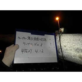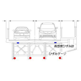 【計測項目】 ■床版下面たわみ ■中央横桁たわみ ■端横桁たわみ ■鉄筋ひずみ ■補強鋼板ひずみ ■床版上面ひずみ ■中央横桁中央ひずみ ■端横桁中央ひずみ ※詳しくはPDFをダウンロードしていただくか、お気軽にお問い合わせください。